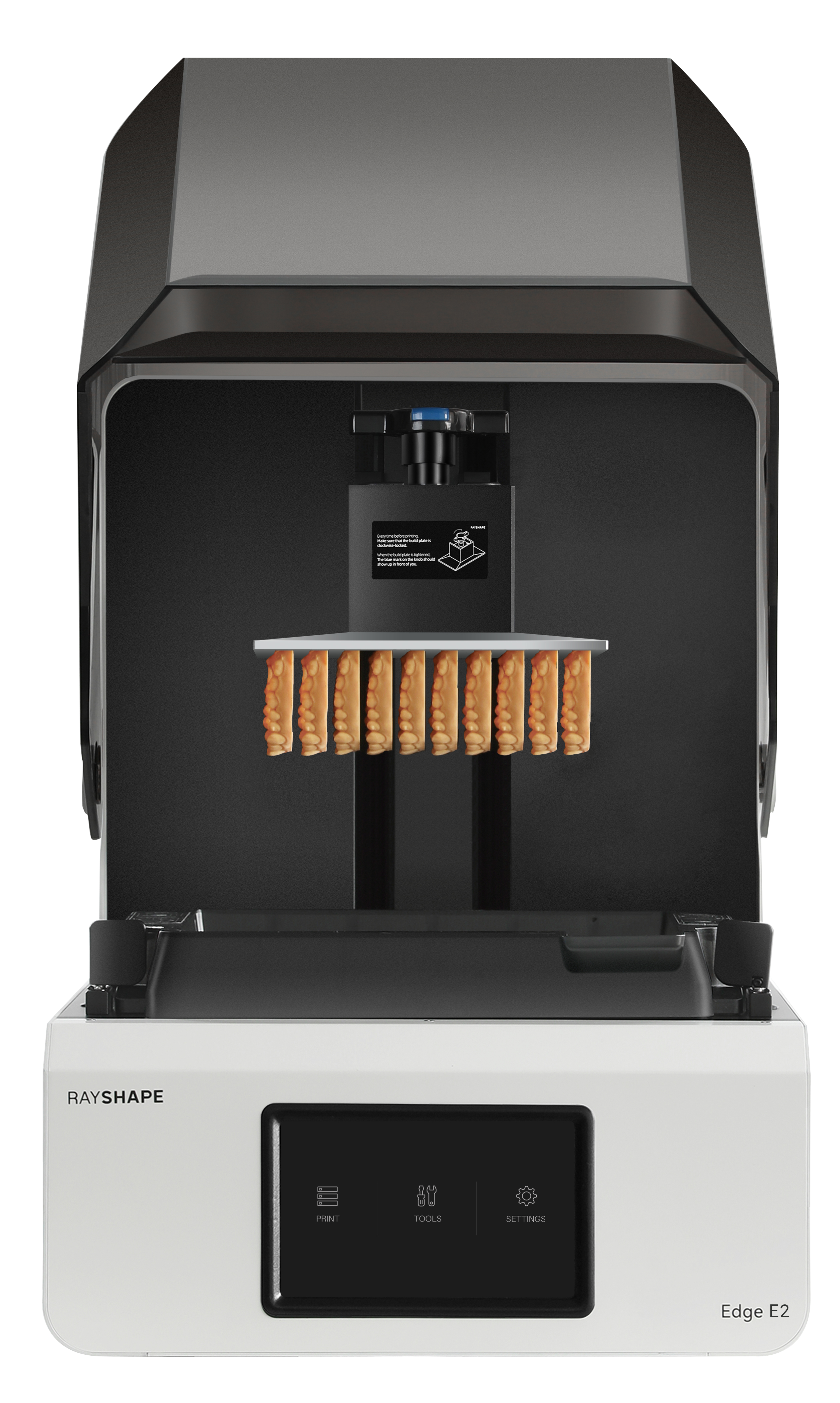 - Edge E2 offers very fast and precise processing at up to 85 mm/h, which effortlessly meets the requirements of modern dental production. The large construction volume of 190 × 120 × 190 mm and the heated material trough allow efficient production of several objects at the same time